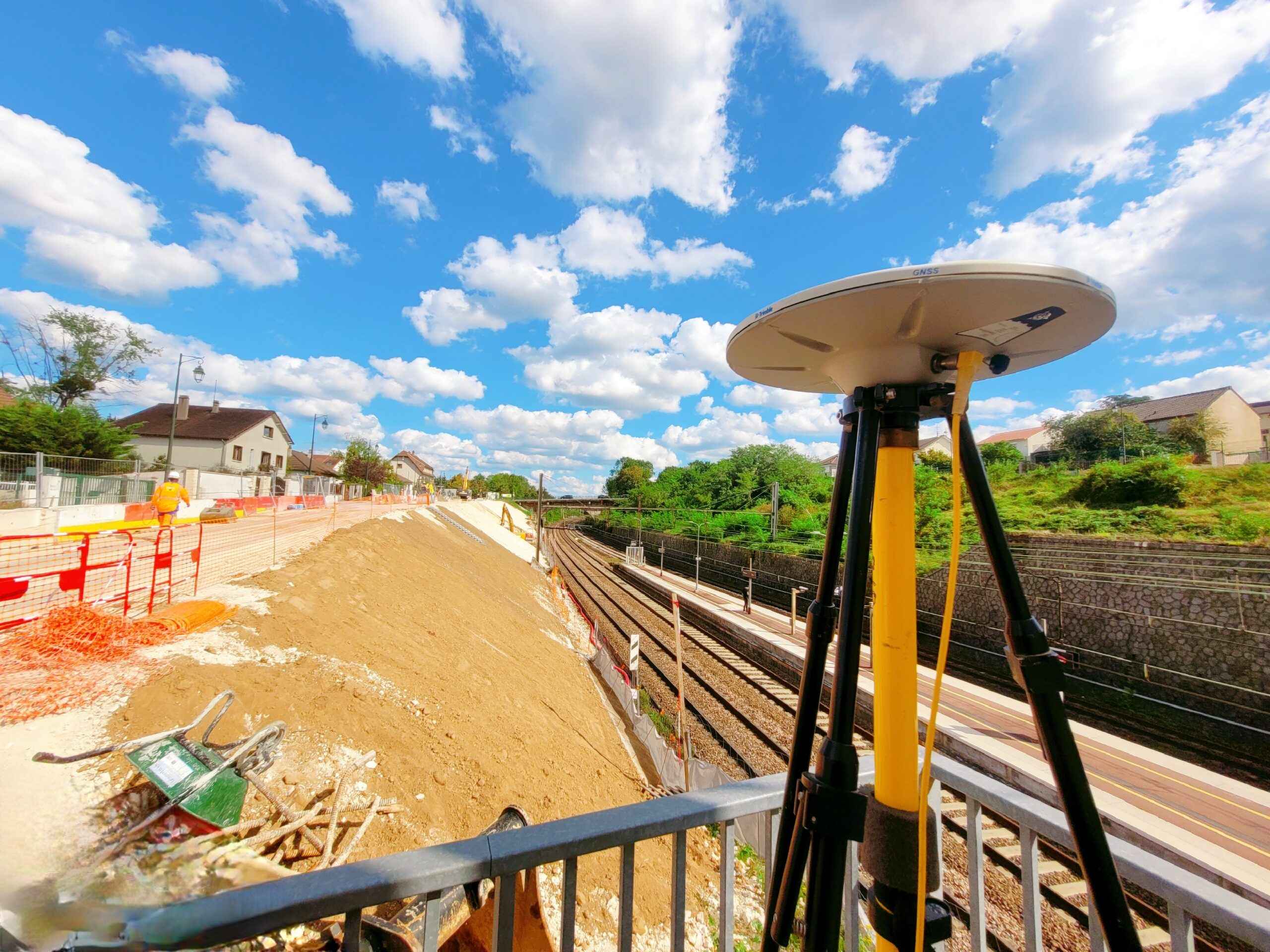 À Yerres (91), pour le compte de SNCF Réseau, nous sommes intervenus de juillet à novembre 2023 dans le cadre du confortement d’un talus ferroviaire de 170 m de long et 10 m de haut, fragilisé par un glissement de terrain menaçant le trafic.